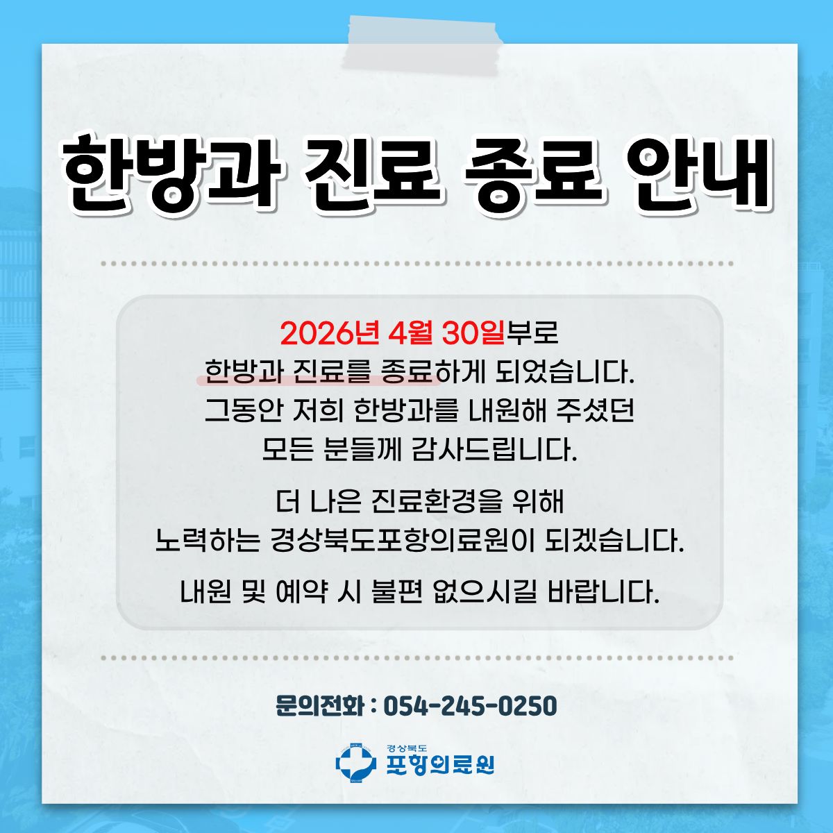 * 경상북도포항의료원은 국가보훈 위탁 의료기관입니다.